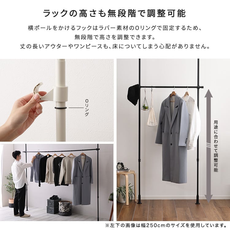高さ調節することができるのでコートなど丈が長い衣類も収納できます。