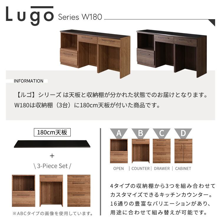 天板は幅180cmとなっておりますので、3台並べてお取り付けください。