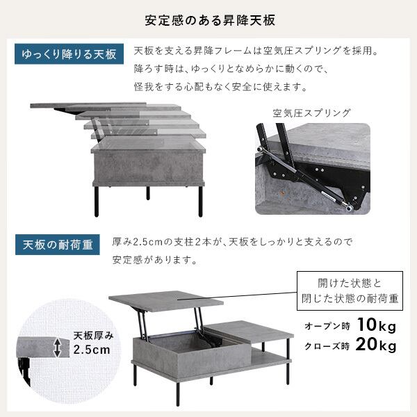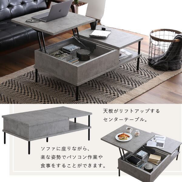 天板昇降式なのでソファに座りながらワーキングテーブルとしてもお使いいただけます。