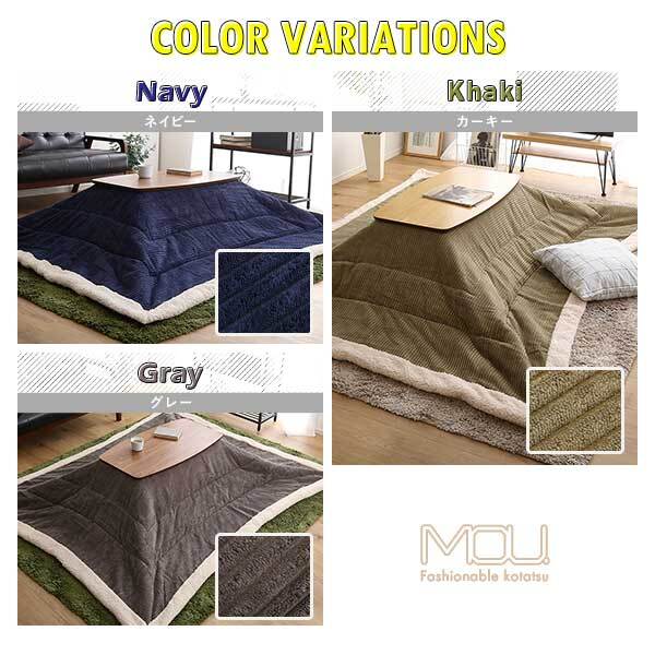 見た目も肌触りも温かなコーデュロイの薄掛けこたつ布団 長方形タイプ。