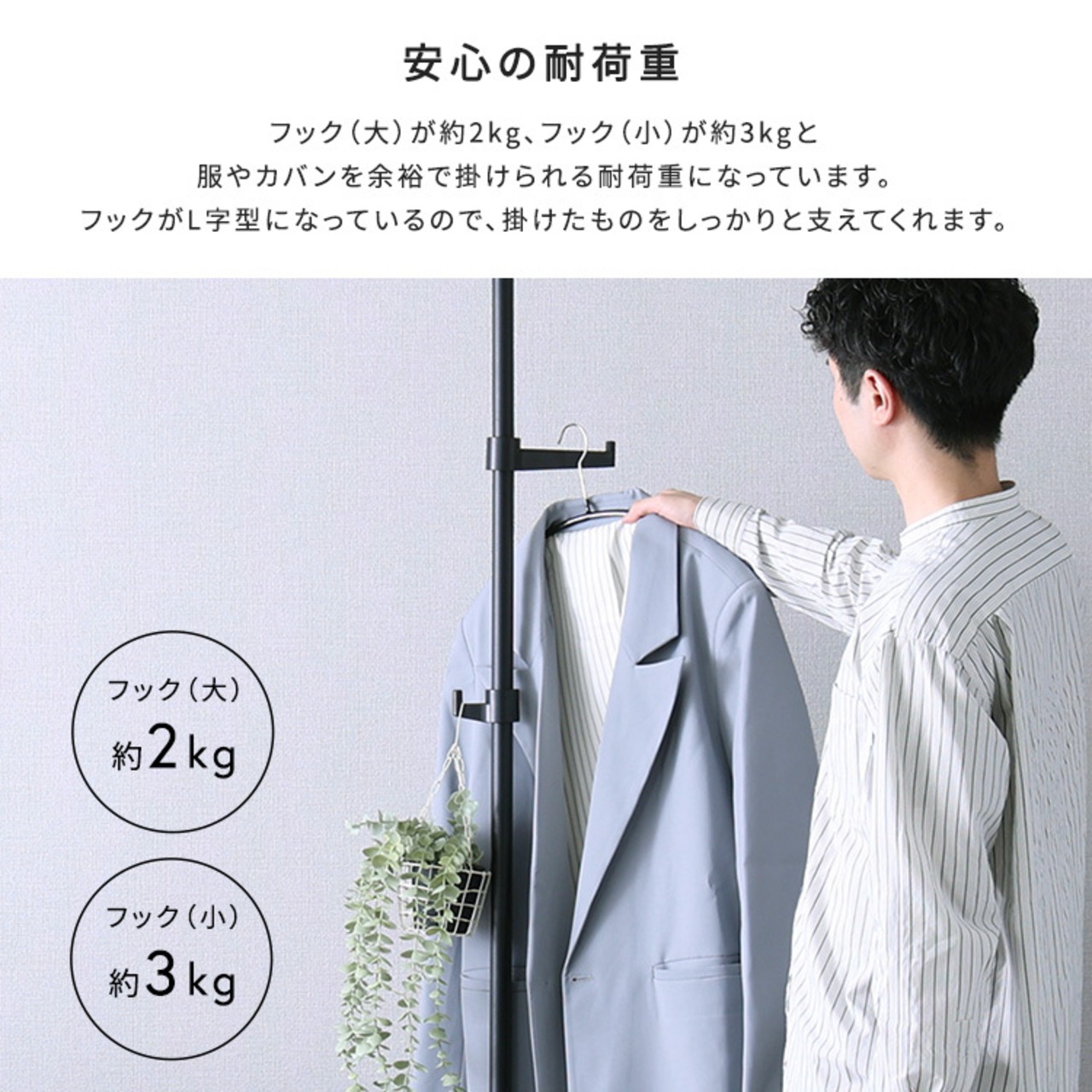 床と天井があれば、お部屋のどこでも使う事が出来る、おしゃれなつっぱりポールハンガー!