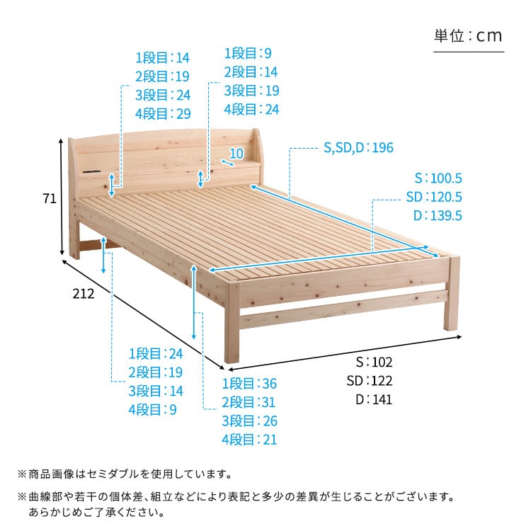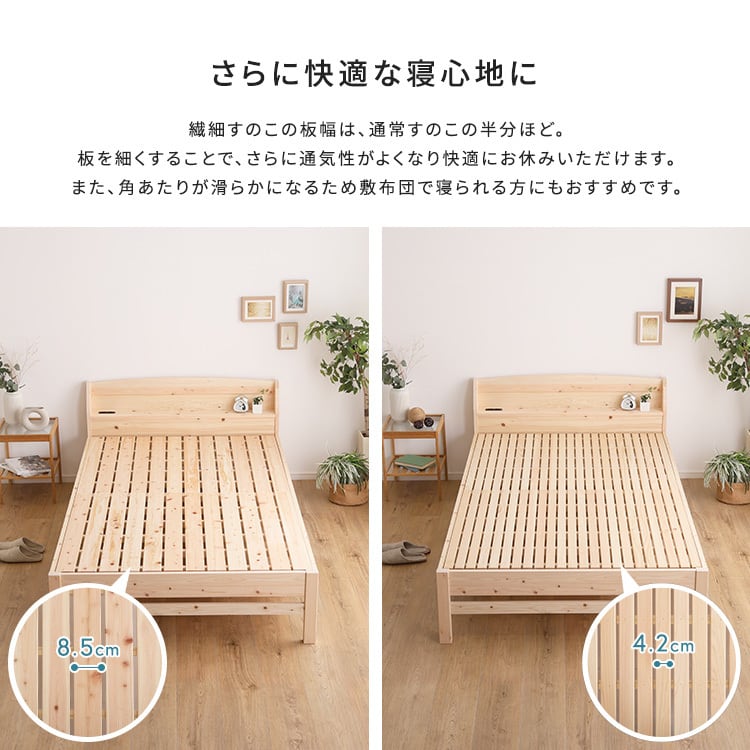 棚コンセント付き国産ひのきベッド 繊細すのこタイプ シングルサイズ!