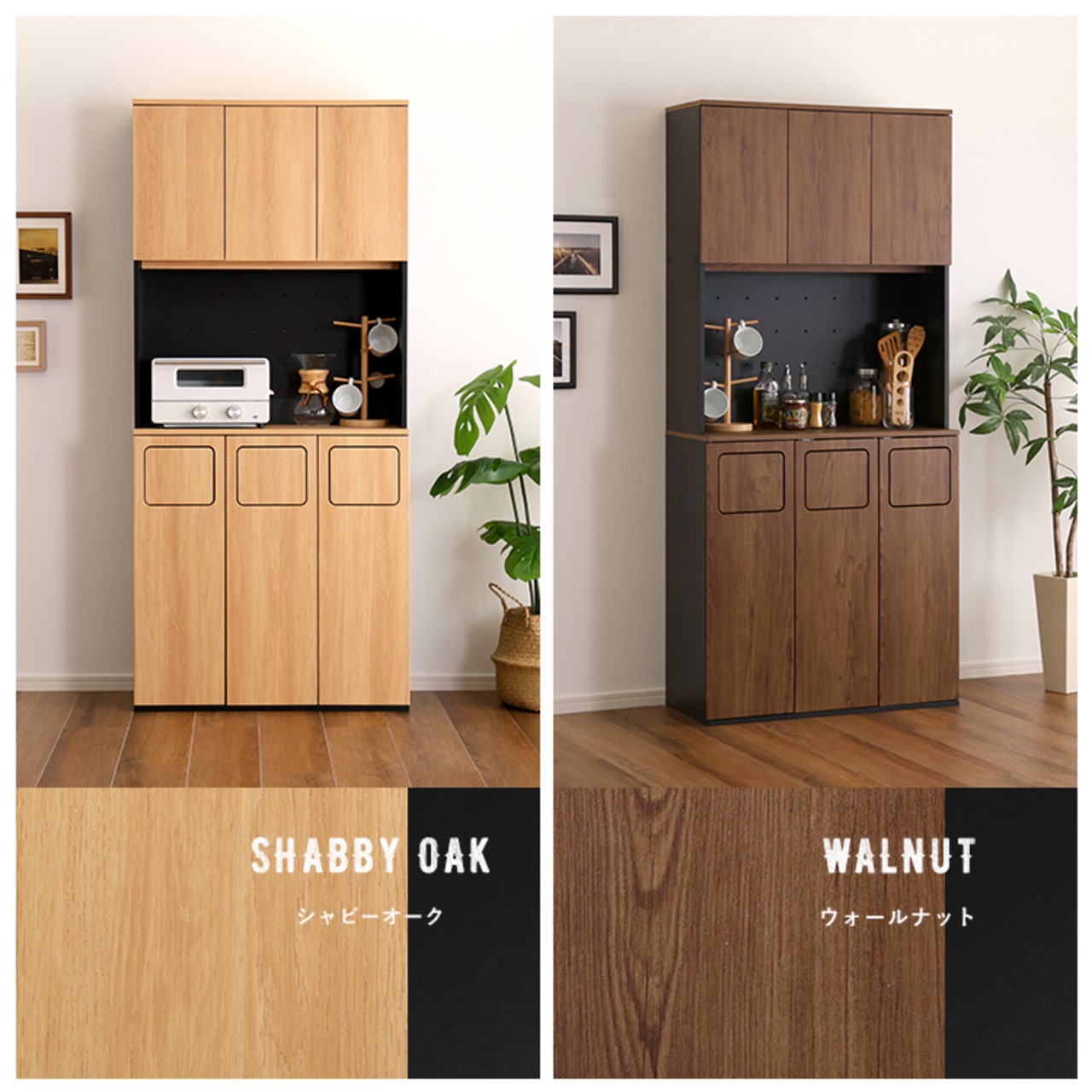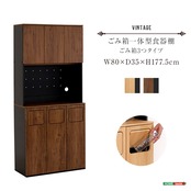 ヴィンテージテイストのごみ箱が一体型になった食器棚!ごみ箱3つタイプ