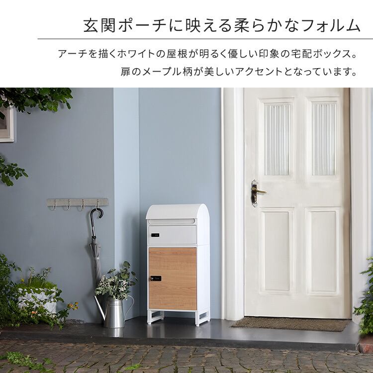 ホワイト×メープル色のデザインの宅配ボックスです。