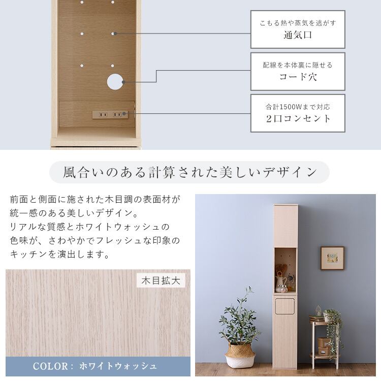 キッチン周りの収納や家電、ゴミ箱のスペースをこれ一台で有効活用できます。