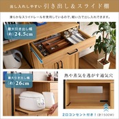 出し入れしやすいスライドトレーには2口コンセントがついており炊飯器など置くのにピッタリです。