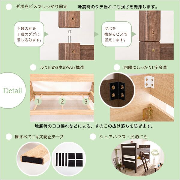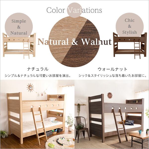 木目調3Dシート二段ベッド宮付き【COCCO-コッコ-】 HT-0620