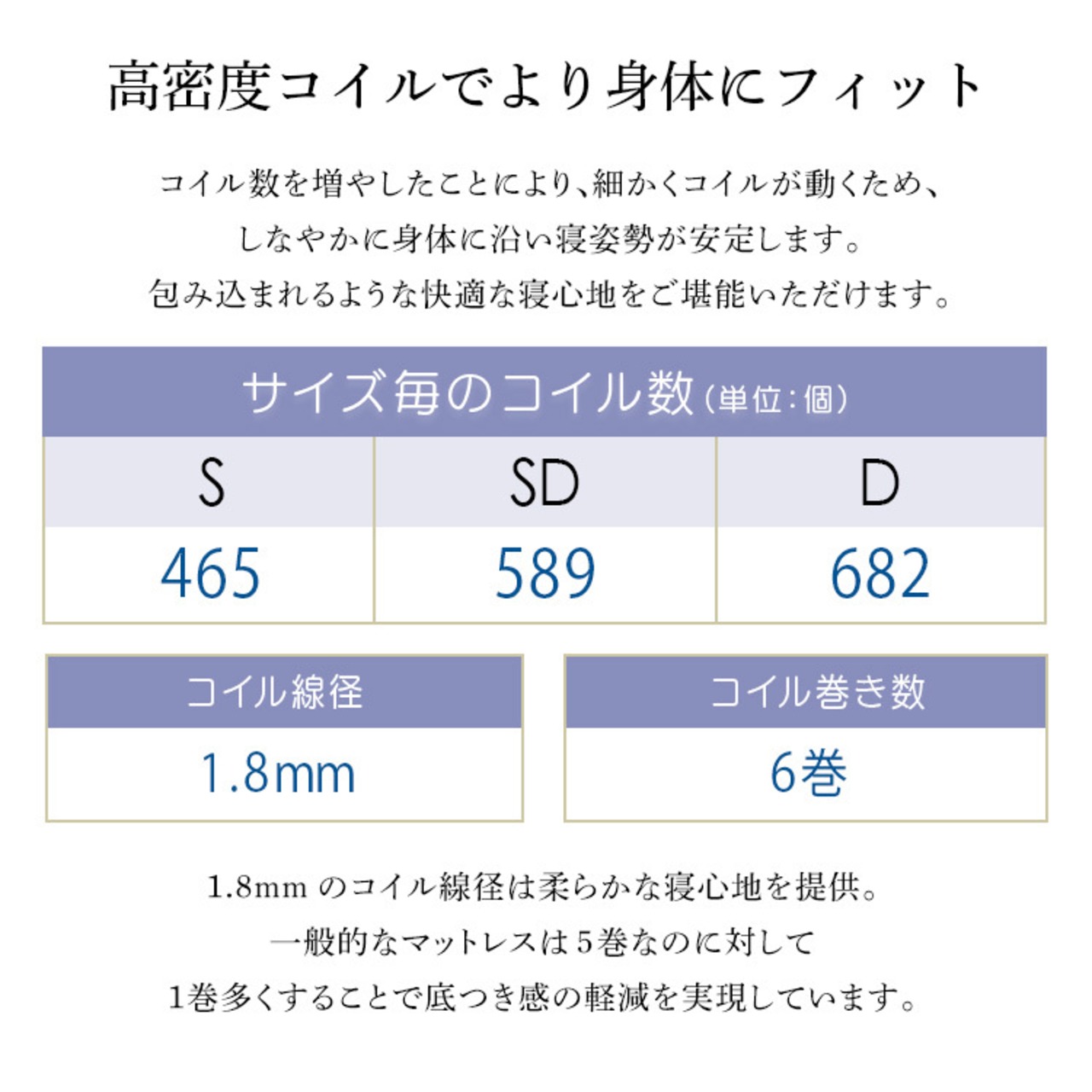ポケットコイルにより、体重を分散させた負担のない自然な寝姿勢を保つことができます。