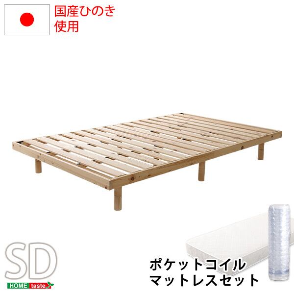 3段階高さ調節 国産総檜脚付きすのこベッド 【Pierna-ピエルナ-】(ポケットコイルロールマットレス付き) セミダブル