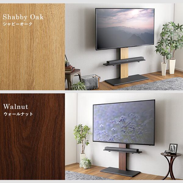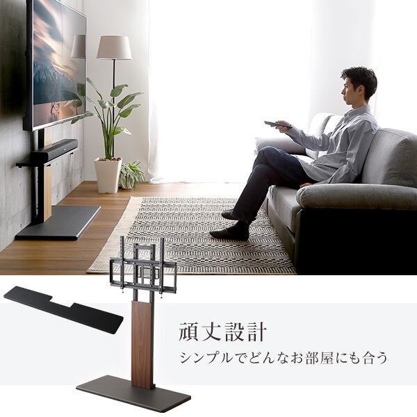 32インチから最大100インチまで対応の頑丈テレビスタンドと専用サウンドバー棚板のセットです。